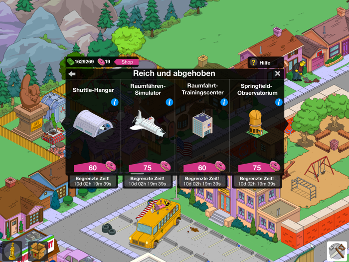 Sonst müsste ich ein neues Springfiel schnell auf Stufe 20 bringen, das schaffe ich derzeit nicht.