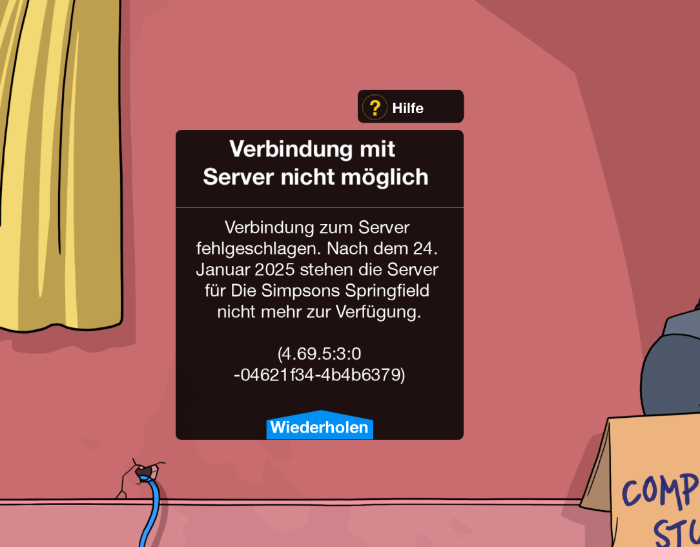 Ich weiß noch nicht mal so genau wie lange ich schon spiele - sicher seit mindestens 10 Jahren (und ich glaub anfangs zwei Jahre lang ohne angemeldet zu sein). Zwischendurch hab ich mal ca. 2 Jahre Pause gemacht, aber mir gehts da wie @Ruebennase, ich hab's auch fest im Tagesablauf drin, plane langfristig usw... Springfield wird mir fehlen...