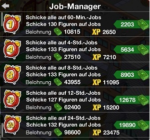 60m | Schicke alle Figuren mit Hilfe des Job-Managers des Arbeitsamtes auf 60-Min.-Jobs. |